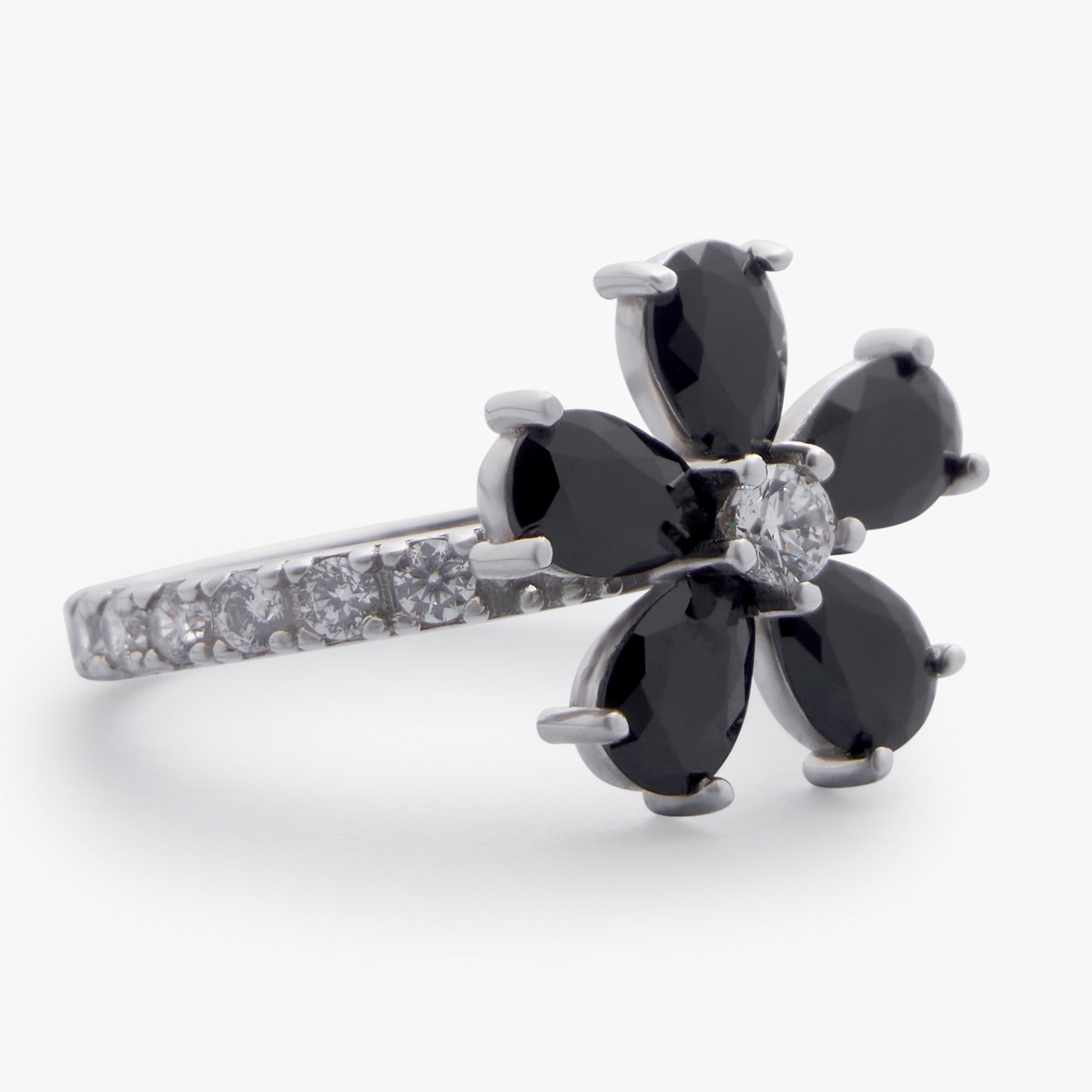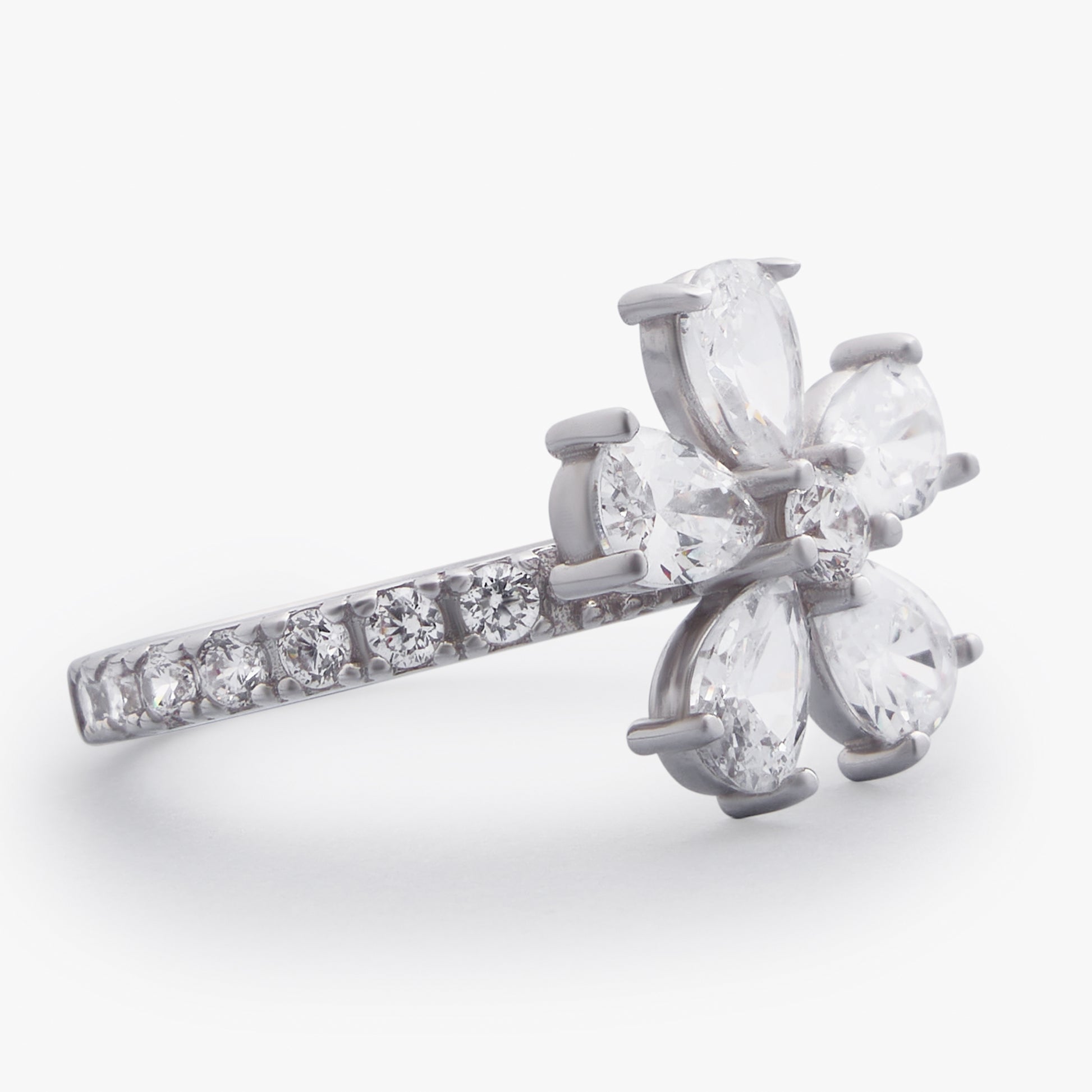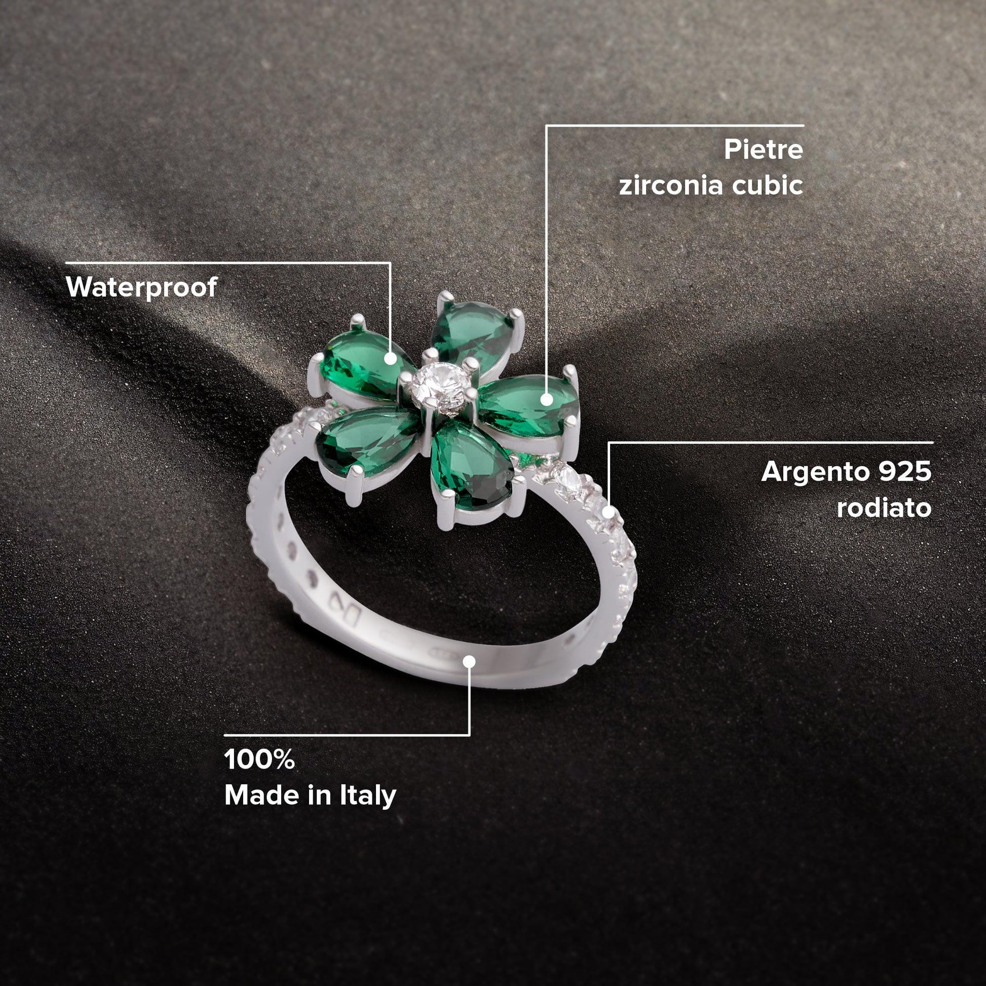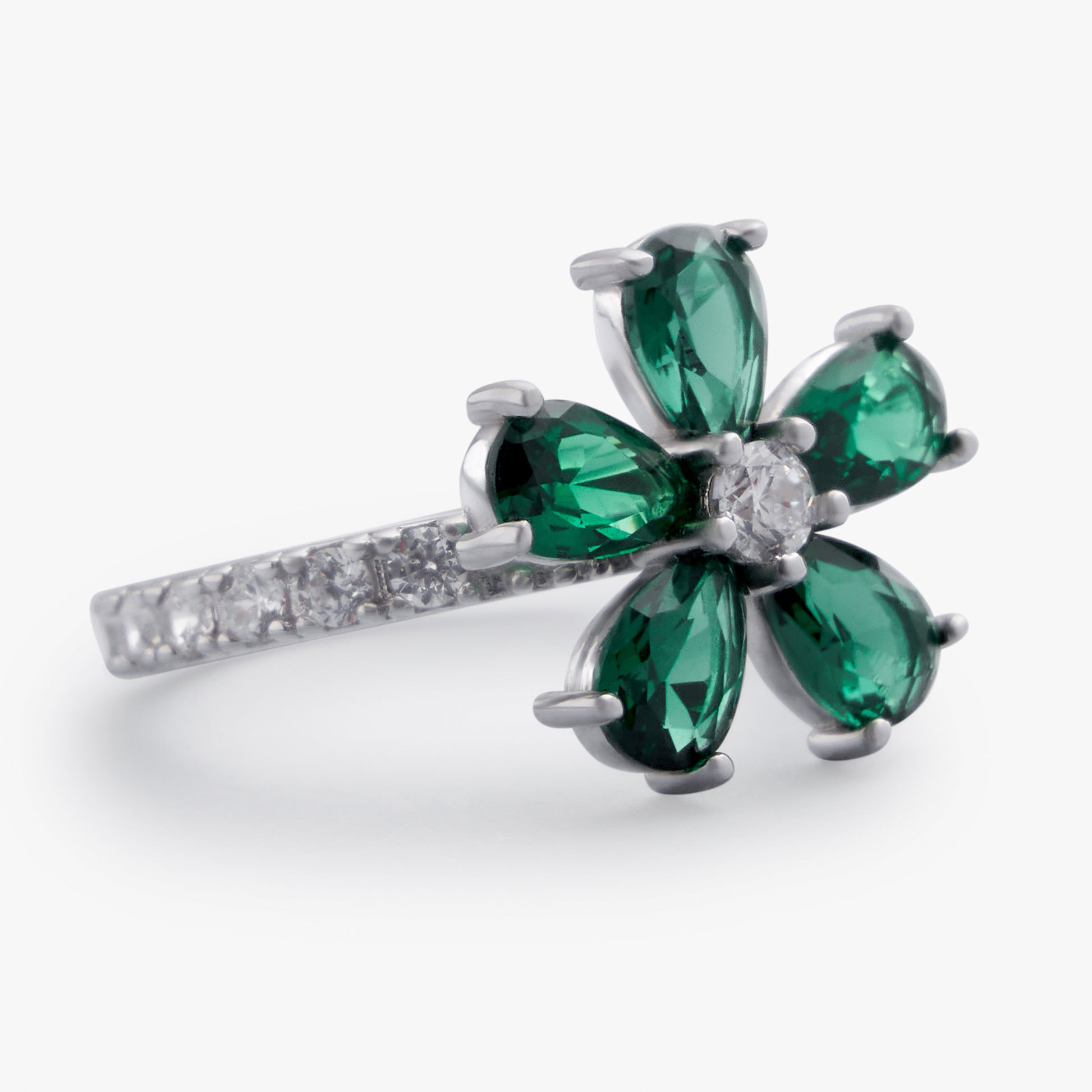 The ring from the My Garden collection has a simple line but stands out and shines on the hand of the wearer. A five-petal flower of colored zirconia emerges above a silver stem covered in a pavé of white zirconia.