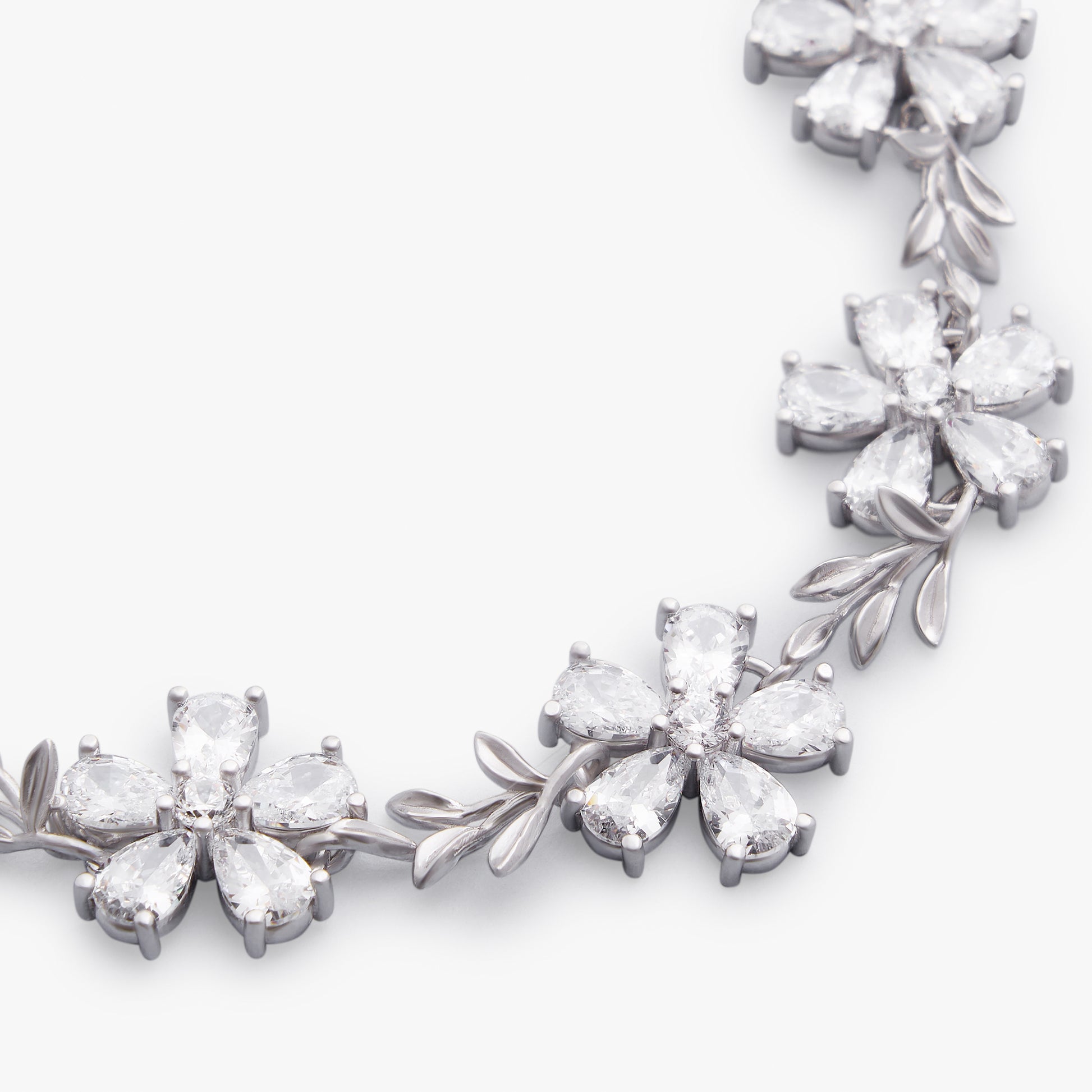 The design of the My Garden bracelet is elegant and harmonious in its shapes. Silver leaves with sinuous lines alternate with five-petal zirconia flowers in this unique jewel, which gives a touch of class and beauty to any type of outfit.