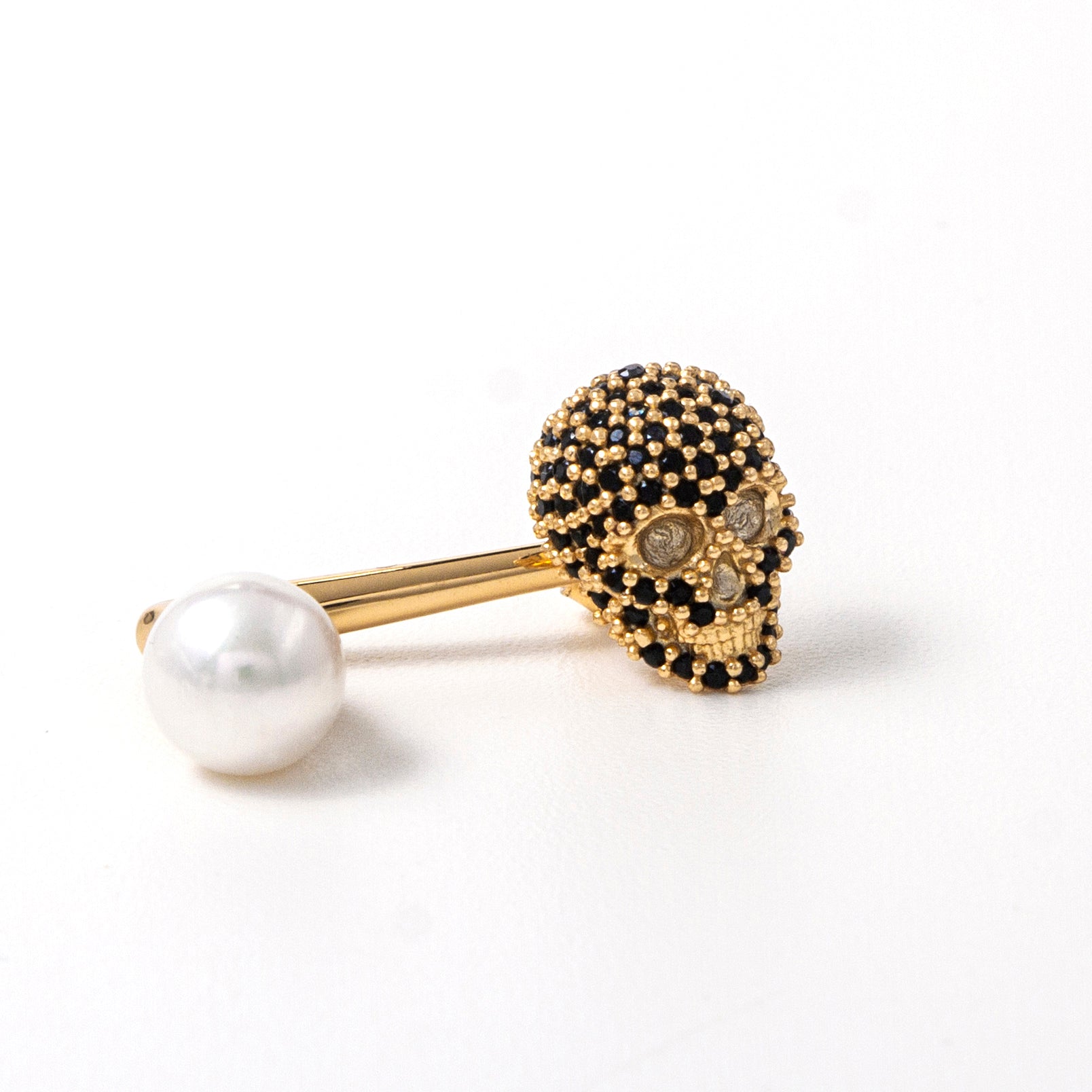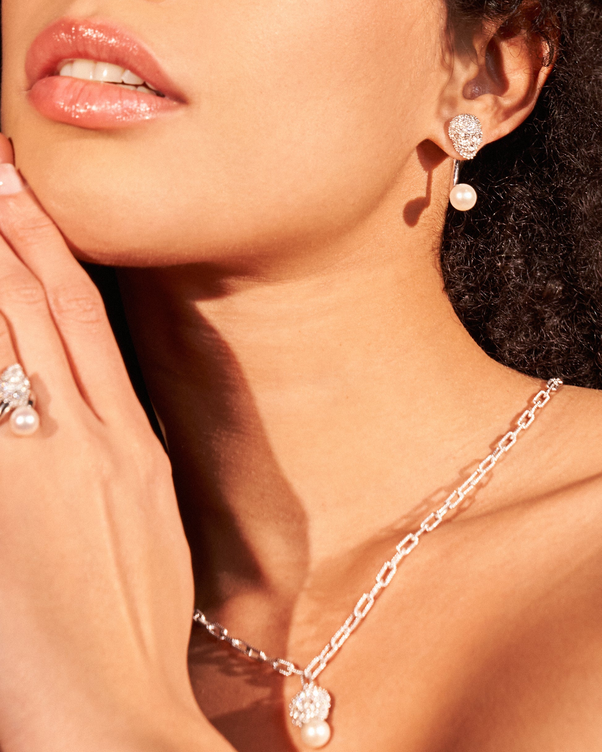 Gli orecchini lunari sono uno dei fiori all’occhiello della collezione Jean Lafitte. Dal design moderno e contemporaneo presentano un piccolo teschio a lobo tempestato di pietre e un elemento dalla forma a gomito che termina con un cono sul quale si adagia una delicata perla naturale, che conferisce al gioiello uno stile unico ed elegante ma al tempo stesso di carattere. Dal forte carattere innovativo questi orecchini sono pensati per poter essere utilizzati nella loro doppia versione: quella classica appena descritta o quella più semplice e minimal caratterizzata solo dal teschio a lobo. Il design particolare e la loro versatilità fanno di questi orecchini un gioiello unico e originale.