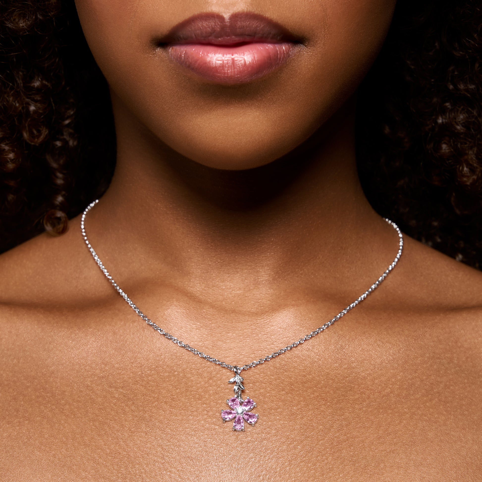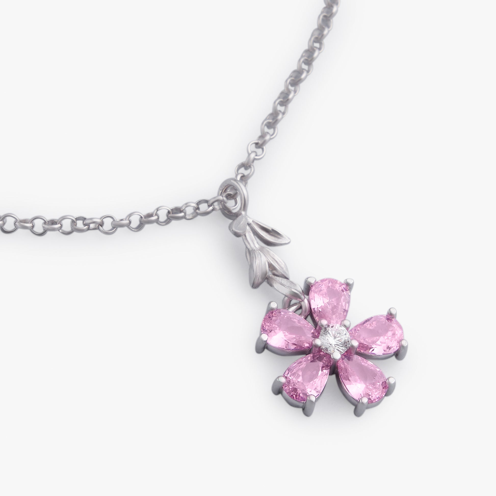 The My Garden pendant is a jewel for those who love minimal style but do not want to give up a touch of light and brilliance. A branch of silver leaves accompanies a five-petal flower of zirconia in this simple but impactful design, easily combinable with any outfit.